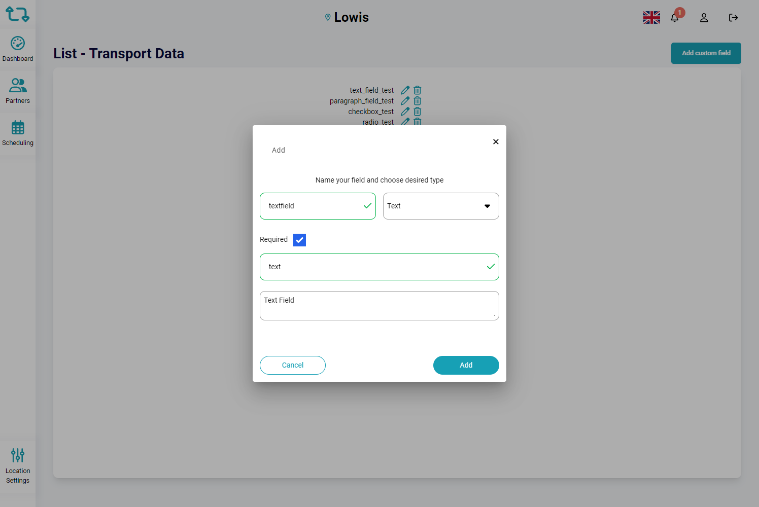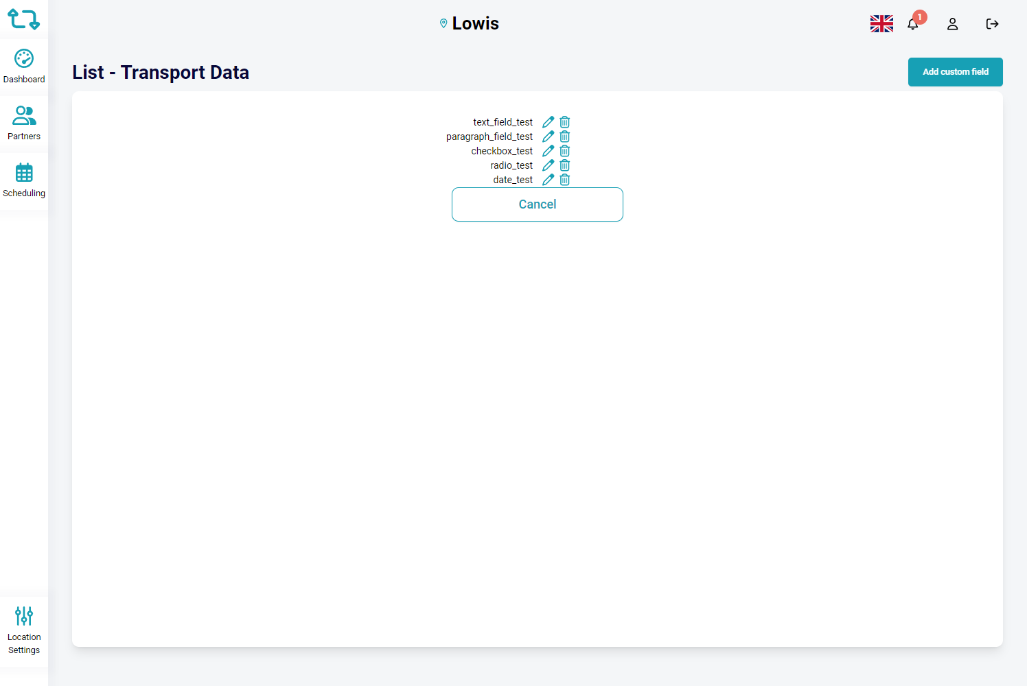 Partners In the PARTNERS module you will be able to define the partners you work with. To manage the partners, follow the instructions below: Add Partner Click on Location Settings from the left menu Click on Partners from the Operations section ...